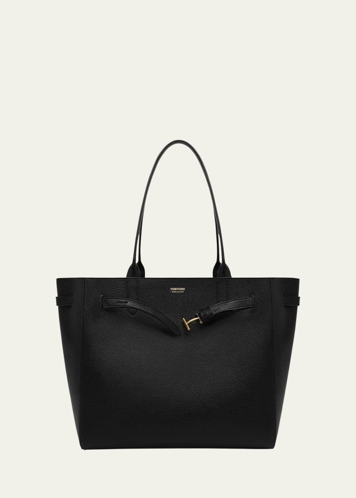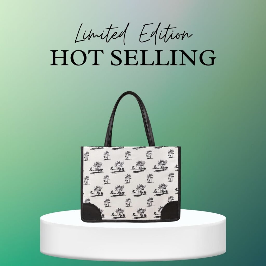 Elegant black leather tote bag with a spacious design and subtle gold accent, ideal for office and everyday use.